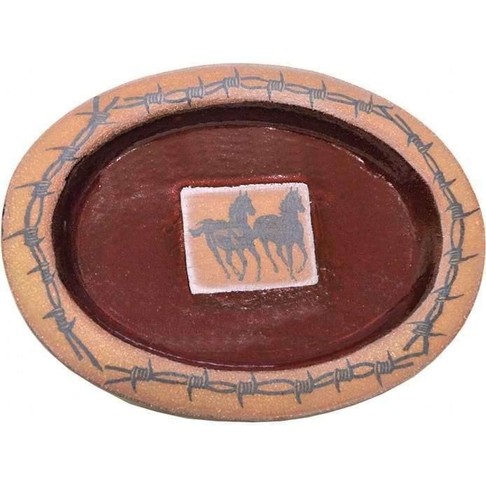Enhance your western dining room with the vibrant red hues of our Running Horses Western Dinnerware. Perfect for rustic and western decor, these handcrafted stoneware pieces feature rich shades of red, natural terracotta, and copper glazes. Each piece is individually made, creating a one-of-a-kind display of natural artistry. The deep, textured design of this handmade pottery line will bring a touch of nature into your kitchen or dining room. Each place setting includes a dinner plate, salad plate, bowl, and mug, making it the ideal gift for any western enthusiast or upgrade for your next dinner party.