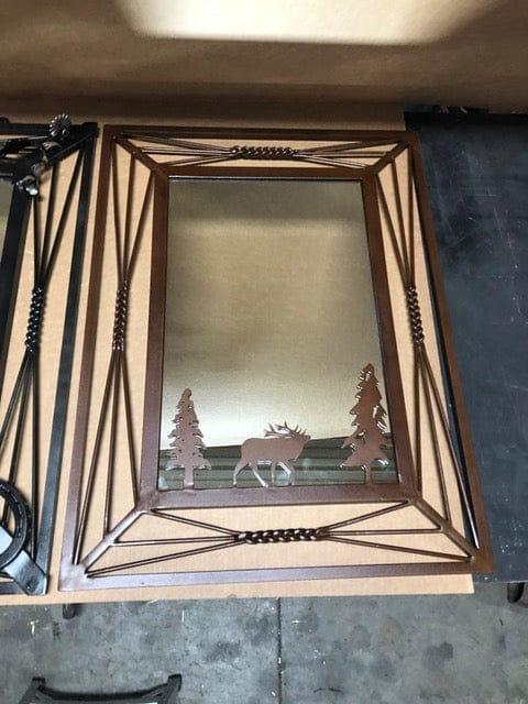 Our handcrafted Lodge and Western Iron Wall Mirrors seamlessly blend with your western, rustic, and lodge decor. Made of forged iron, these mirrors feature a braided accent created by three rods on the top, bottom, and sides. Choose from bronco or wilderness designs or create your own unique look. For a touch of nature, select between Moose or Elk in the Wilderness design and note your choice at checkout.